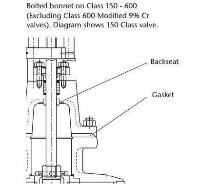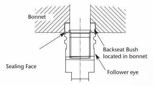 后座的原理只能在不太可能發生壓蓋泄漏的情況下使用,以將壓蓋與系統壓力隔離,直到工廠停機并進行維修。在任何情況下,為了修理有問題的密封壓蓋,都不應在系統受壓的情況下取出后座。在正常操作下,閥門只能打開到后座的3mm內。